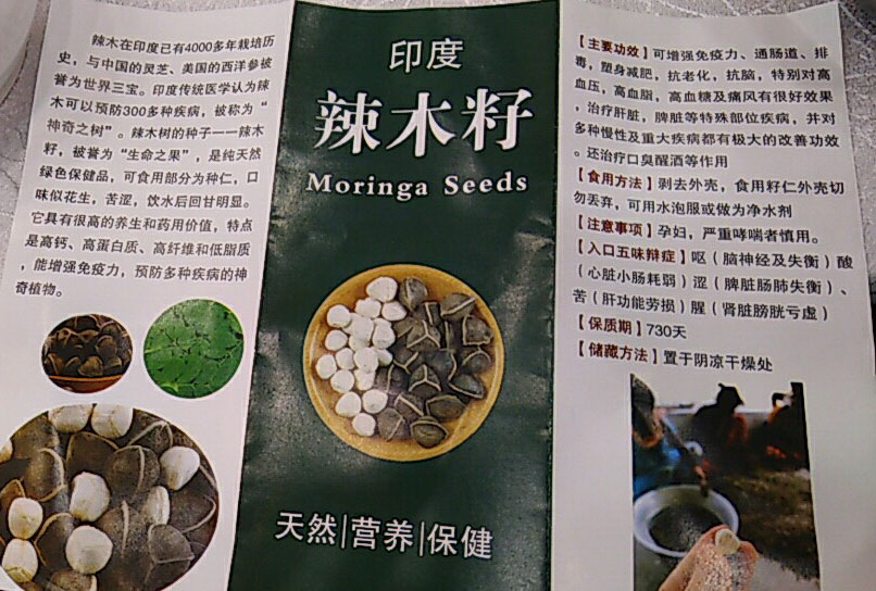 本產品是原裝封密封口包裝由印度入口的辣木籽,貨源真正來至印度,並不是雲南或其他地區的辣木籽!此印度辣木籽因源於本土保健功效較顯注!